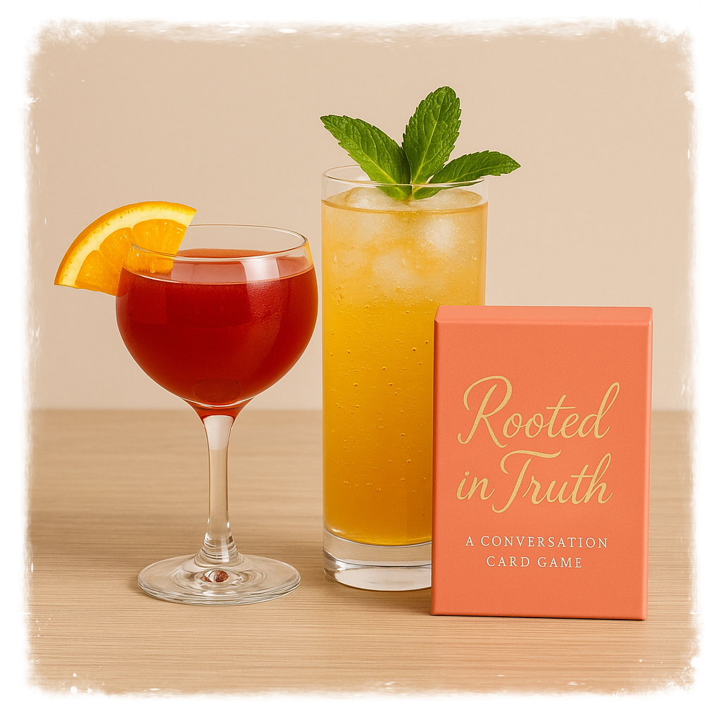 Sip and connect with Rooted in Truth, our faith based mother and daughter card game created to build intentional conversations and strengthen relationships. Whether used for family nights, retreats, or girls’ gatherings, it pairs beautifully with our mocktails for a meaningful, memorable experience.