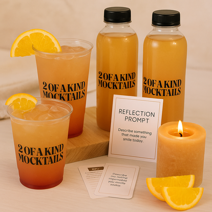 Go all in on the celebration! The Celebrate Together Kit is a full experience in a box. It includes ingredients and garnishes for 3 seasonal mocktails (serves 12–15), a complete recipe and food pairing guide, and the full Rooted in Truth game deck (30 cards) for hours of meaningful connection. Plus, you’ll receive an exclusive seasonal keepsake (like a recipe journal page, playlist, or custom charm) and a Host Guide to lead your own mocktail tasting night.